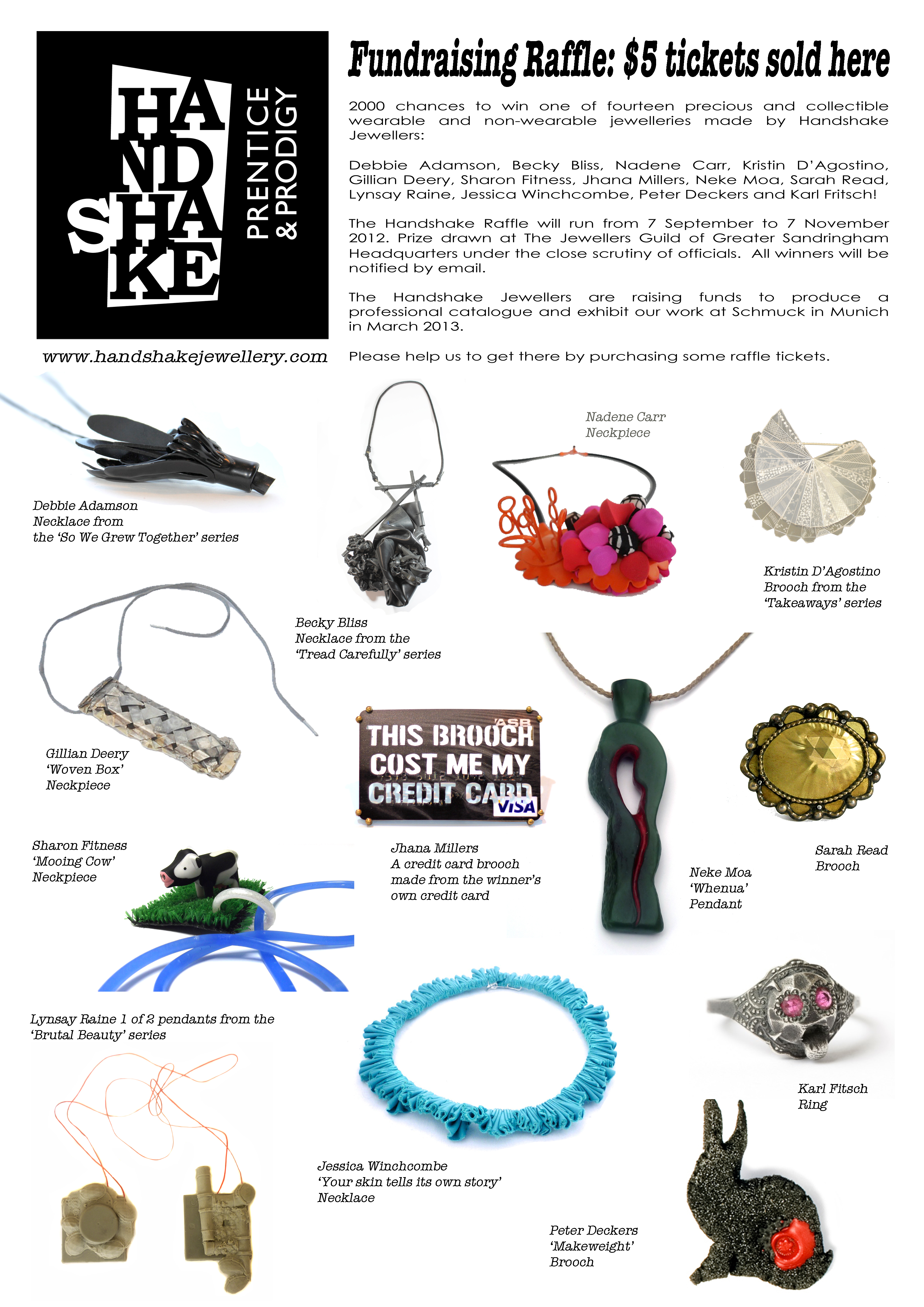 HS1 was the pilot for the HANDSHAKE project as we know it. Early 2010 Peter Deckers was asked by Studio 20/17 Gallery, Sydney to curate an emerging NZ jewellery exhibition that opened in the last quarter of 2011. There was ample time to build upon ideas and making developments – but how to manage that on a professional level?