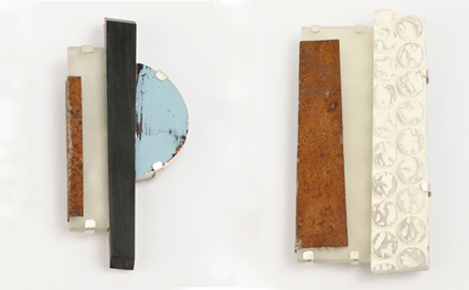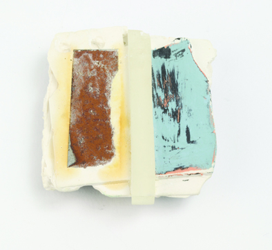 Brooch: Palimpsest 1-3 Plaster resin, silver, paint, stainless steel, urethane