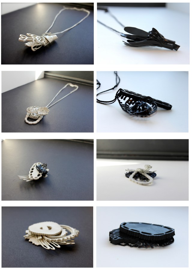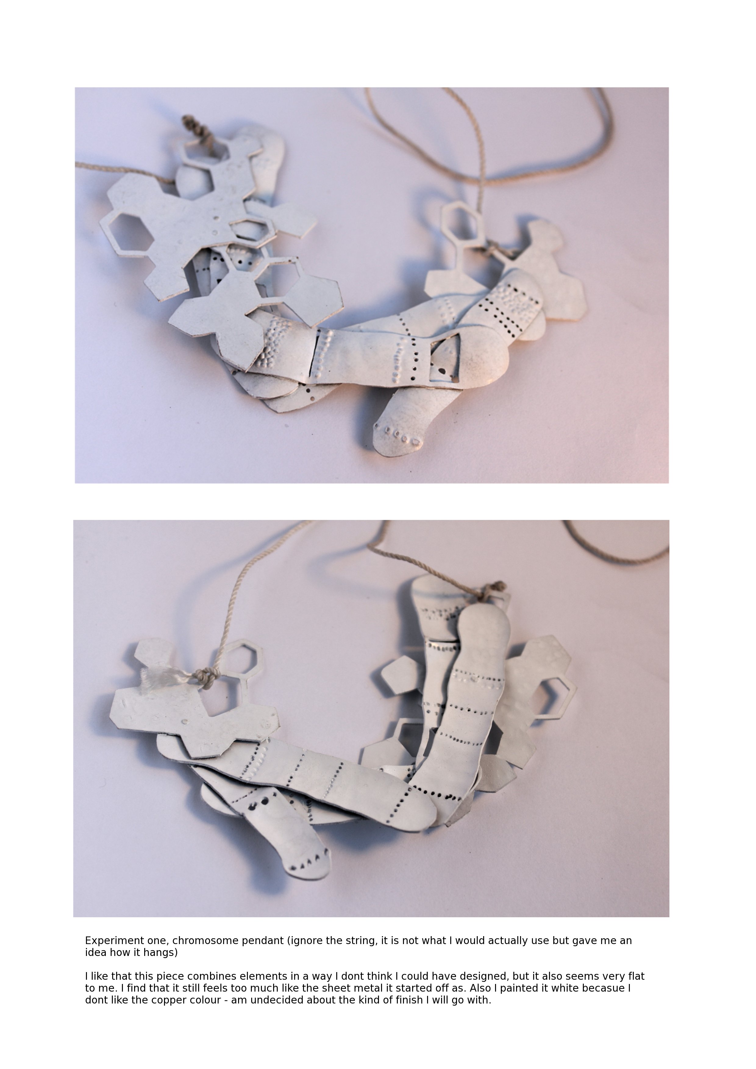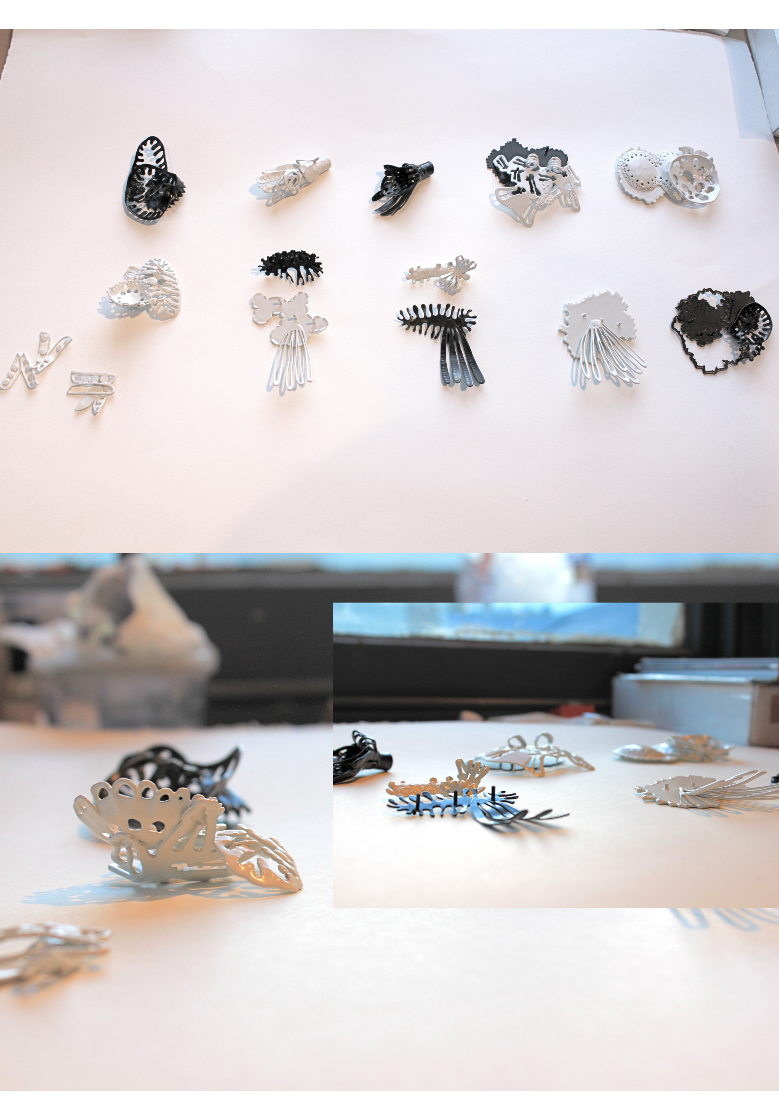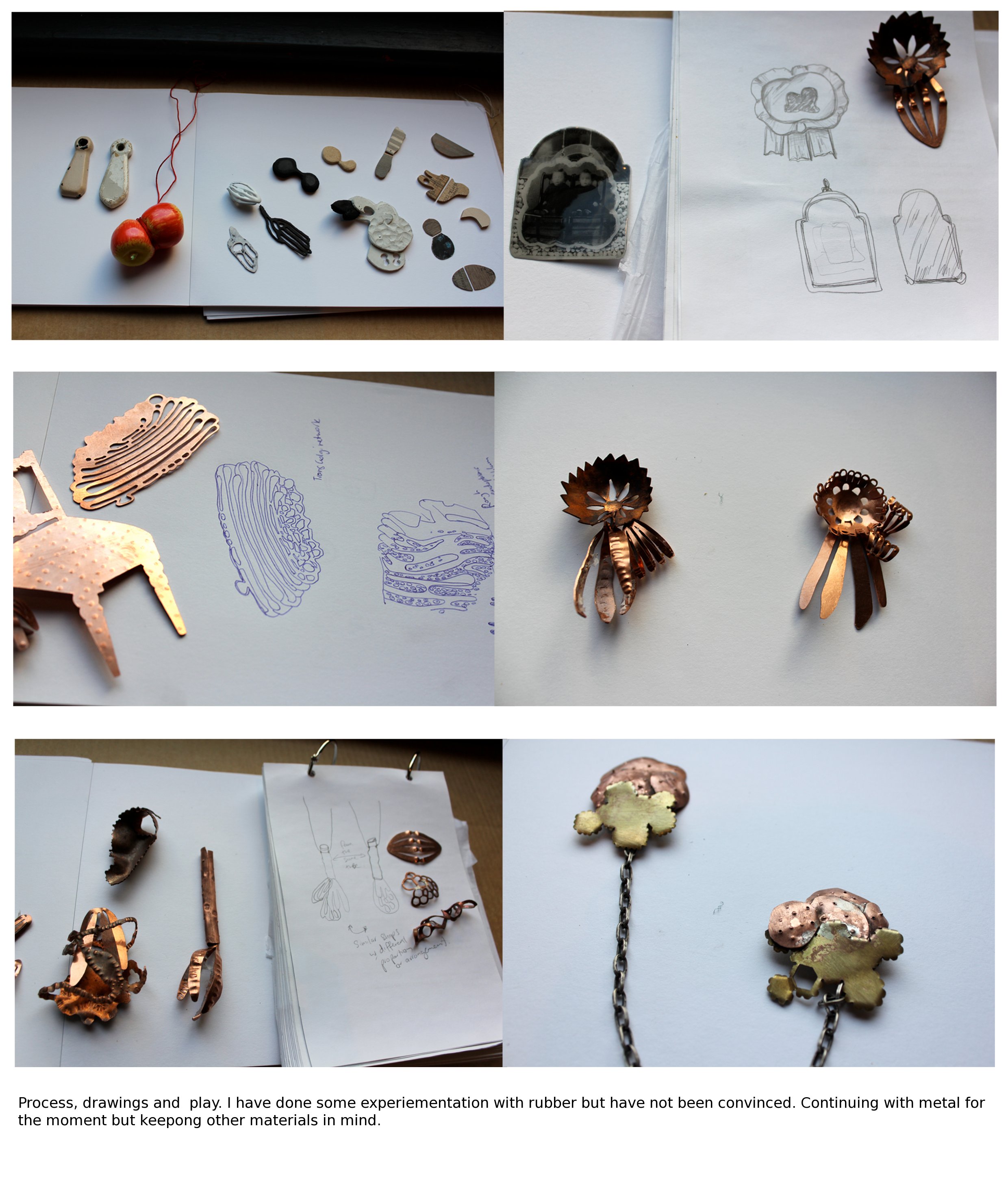 “I see that you have already started to make jewellery out of the pieces. Maybe that is a to big step in the process? You have to trick yourself not to make the obvious and unexpected.”