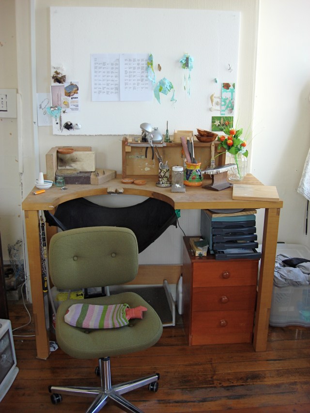 “At the moment it does pull my energy in slightly different directions. Kobi has very strong views and his ideology about jewellery seems a bit more traditional. He’s very involved in the arts, and so has an amazing and appreciative eye, but I guess he questions why a lot of contemporary jewellery over looks the integrity of jewellery for what it is (adornment). He constantly challenges me to forget about art/concept and just to make jewellery (rings, pendants, bracelets etc). His values and philosophies are very humble and down to earth and I enjoy this very much – yet somehow I feel more confident making work that tries to push boundaries than work that uses the traditional! I think this is because I actually don’t wear a lot of jewellery myself, usually just something like a small pair of earrings. But I’ve realized its a journey and all I can do it try – its been helping me develop in lots of ways so has been extremely rewarding. Although it does drain my energy a bit, I’m learning to be very focused on managing my time and allowing more space for projects. I have committed to much less so that I have enough time to develop.” – Debbie (October 2012)