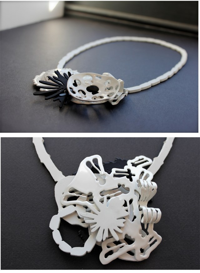 Hanna Hedman. Necklace: Human Tree 2010. Oxidized silver, powder-coated copper, paint. 50 x 32 x 6 cm. Photograph: Sanna Lindberg. Source: http://www.klimt02.net
