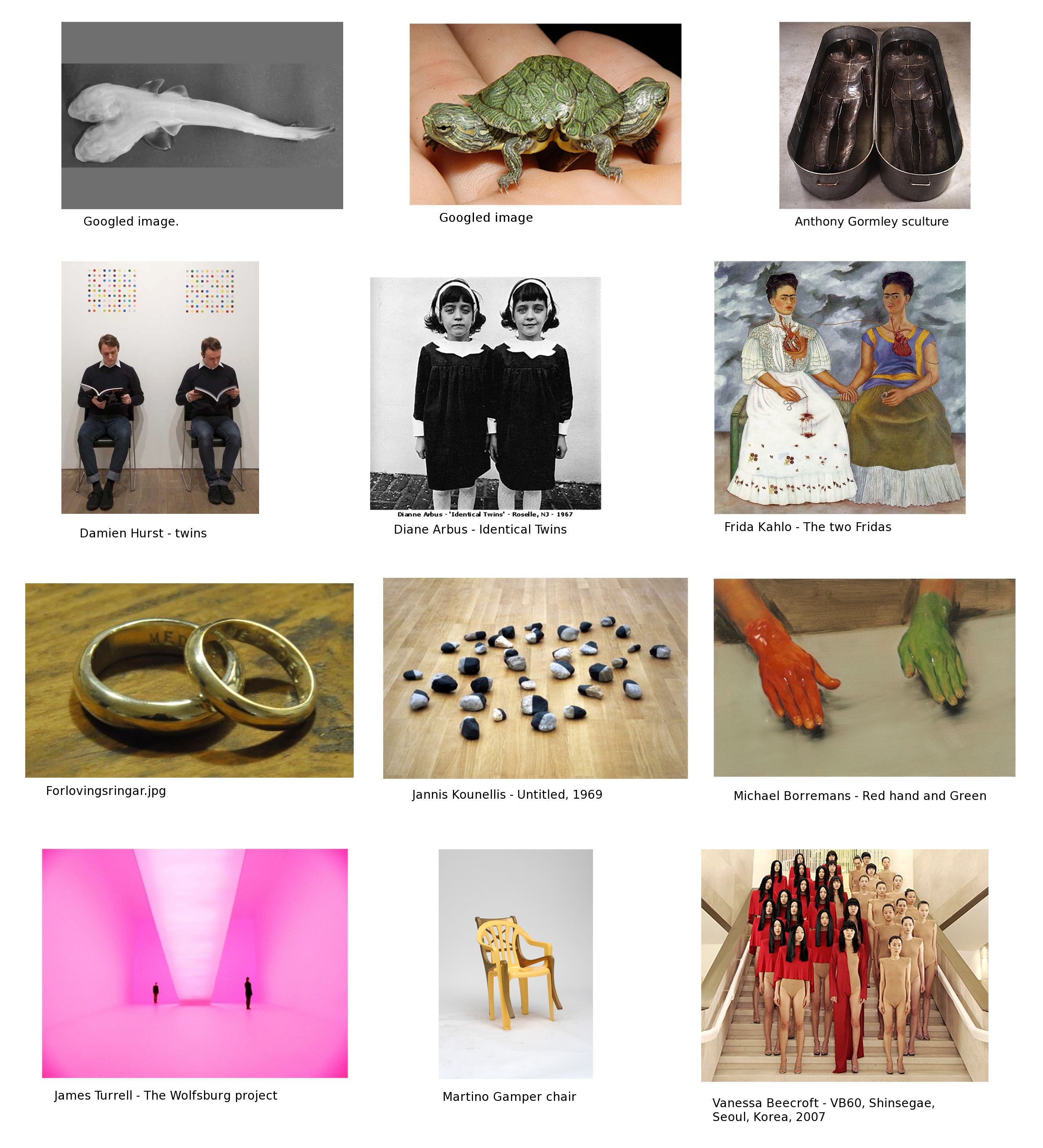 For example; your own personal history of being a twin; materials that bound you and your sister together. Materials that reminds you of being a twin? What color?