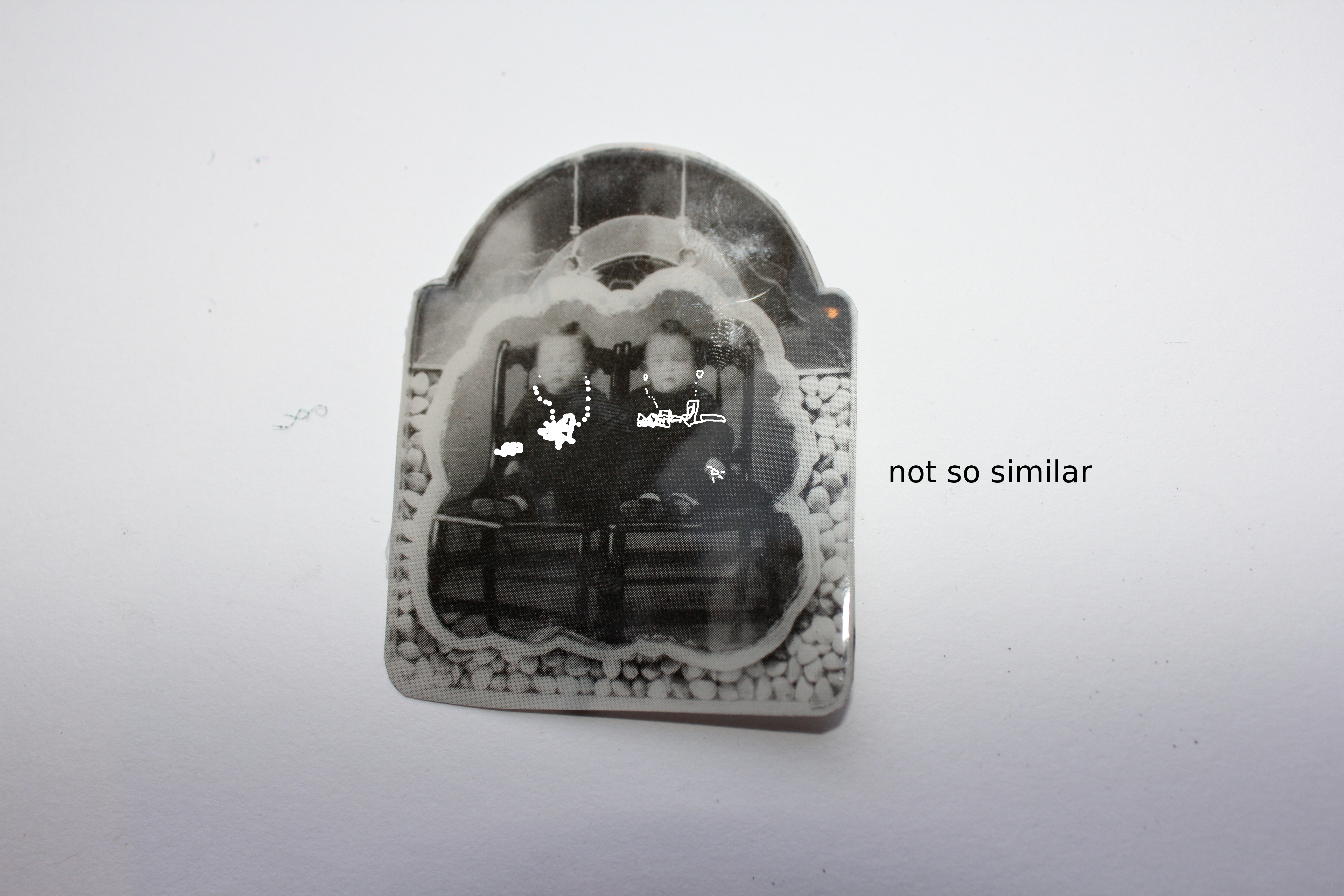 We decided that I would use my experience of being a twin as the theme for collecting material. So far I have managed to get caught up in looking at scientific books about genetics with all sorts of human biological pictures. I find them fascinating but am also concerned that I might be working a little too parallel to Hanna’s current body of work (which I have spent a bit of time looking at!). So hopefully it will develop onward – I’d like to introduce other materials when I can see a place for them.