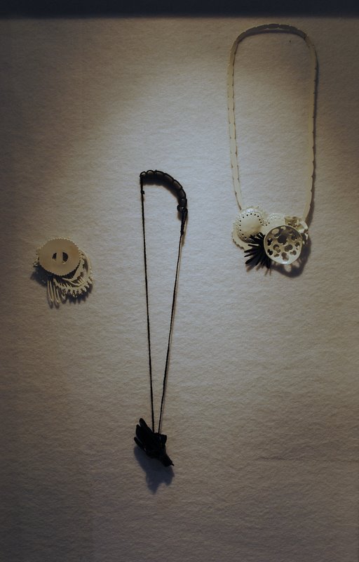 ‘So we gre together’ series of works. Paired necklaces and brooches. Powdercoated copper, rubber, cotton, ryon and steel. 2011