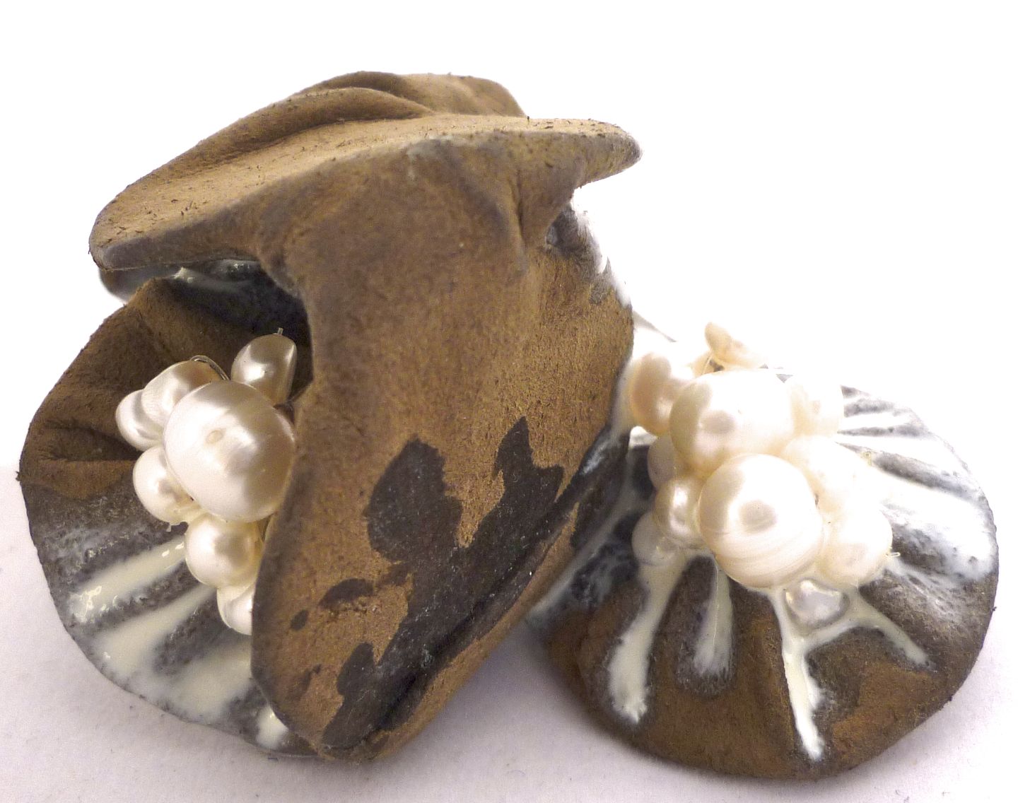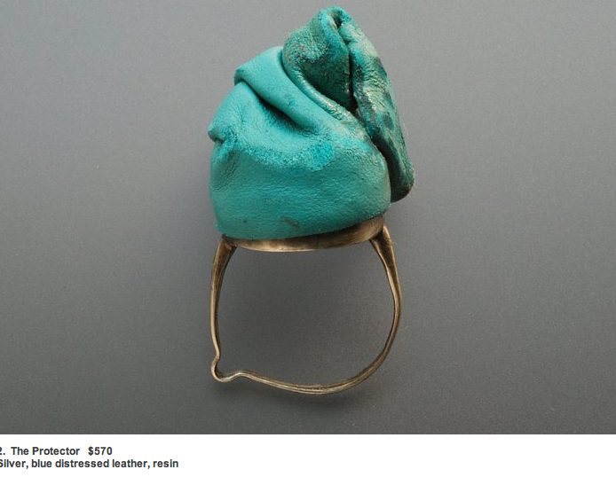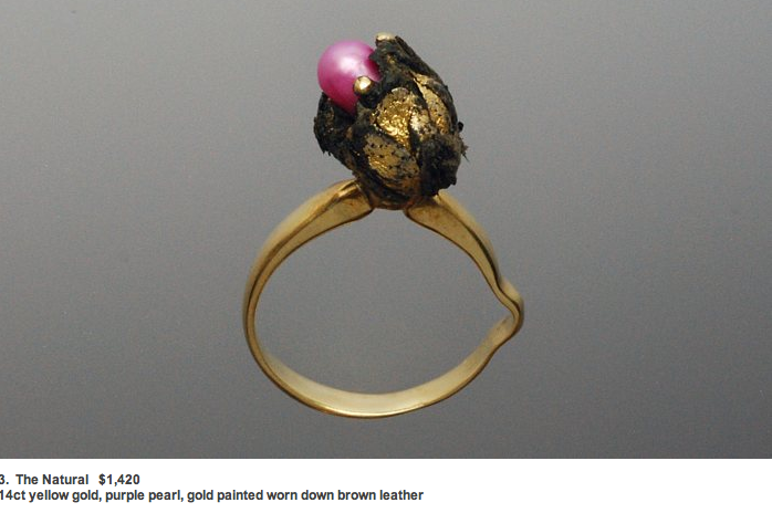 Ring silver and leather, Ring Gold band with focus point, leather cuffs.J.Winchcombe 2012 White sea pearl elbow pads sewn into a bed of brown snake skin. J.Winchcombe Aug 2012
