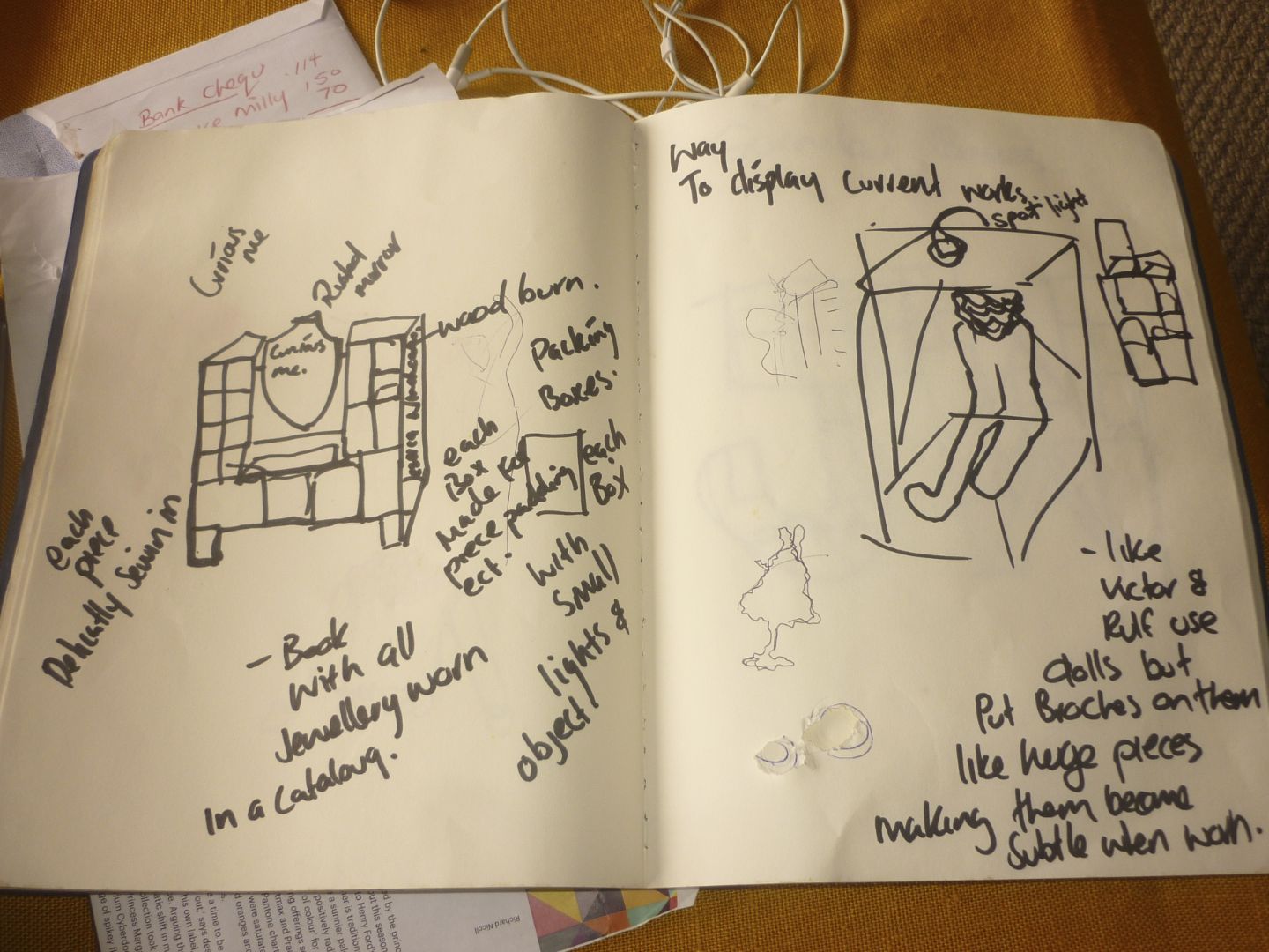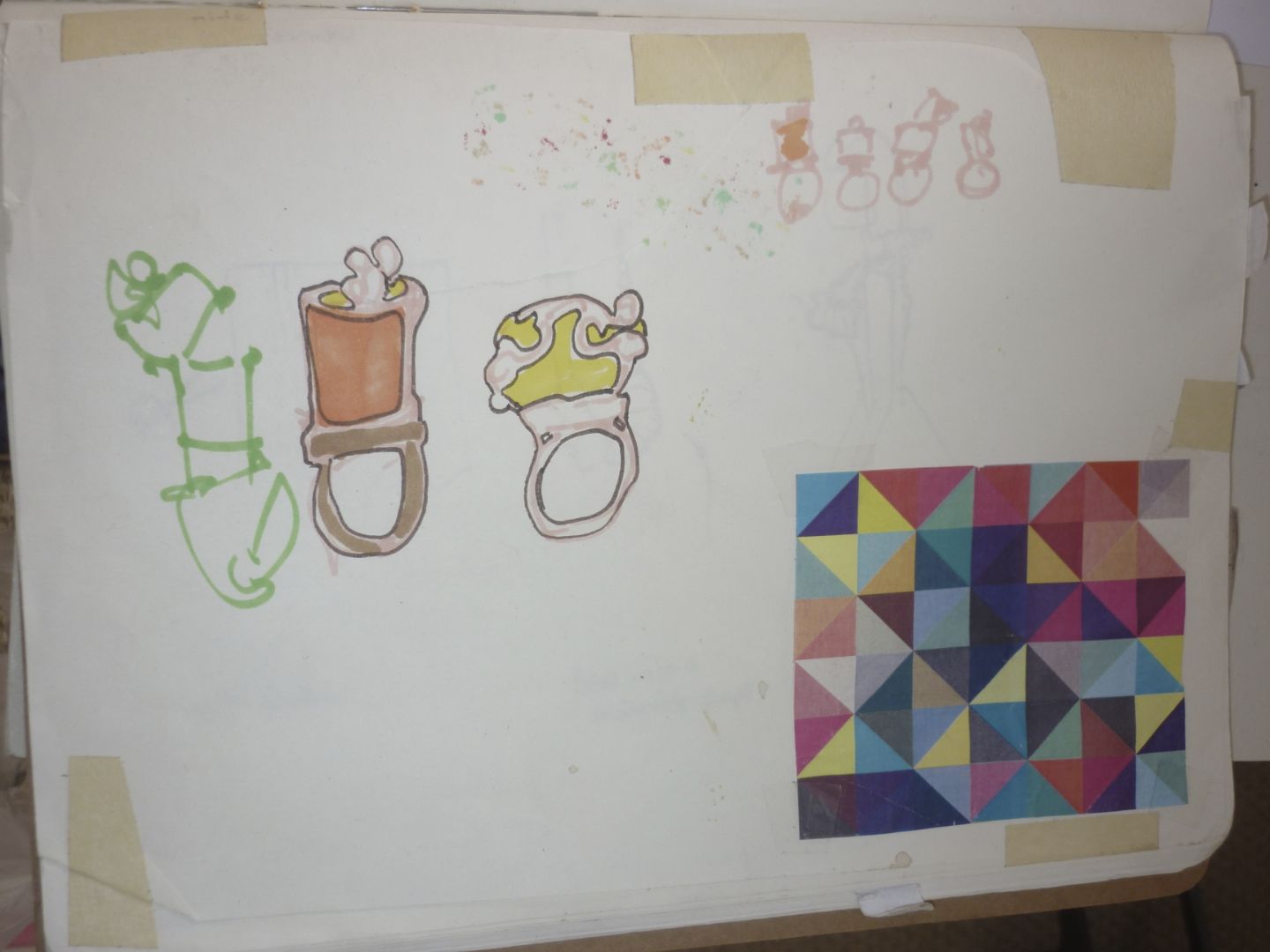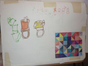 I have been thinking about the Handshake project and how the process of interacting with a artist I admire, is an interesting topic to respond to in it’s self. I drew up some sketchers of response directly to the idea of having a mentor. Perhaps with the idea of how exclusive and precious the project feels after hand picking a master and them accepting the challenge of a recent graduate. Some ideas hold elements of personal interaction such as a double sided glove that my Mentor and Myself could wear at the same time with an explosion of colored sculpture in the middle. Some are more general such as a double sided brooch. Some are playful like a skipping rope that can be used by myself and mentor at the same time. Possibly each handel would be made to fit our own hand prints. I had a lot of fun thinking about these objects of interaction and imagined Warwick and i having a photo shoot with these pieces for a catalogue.