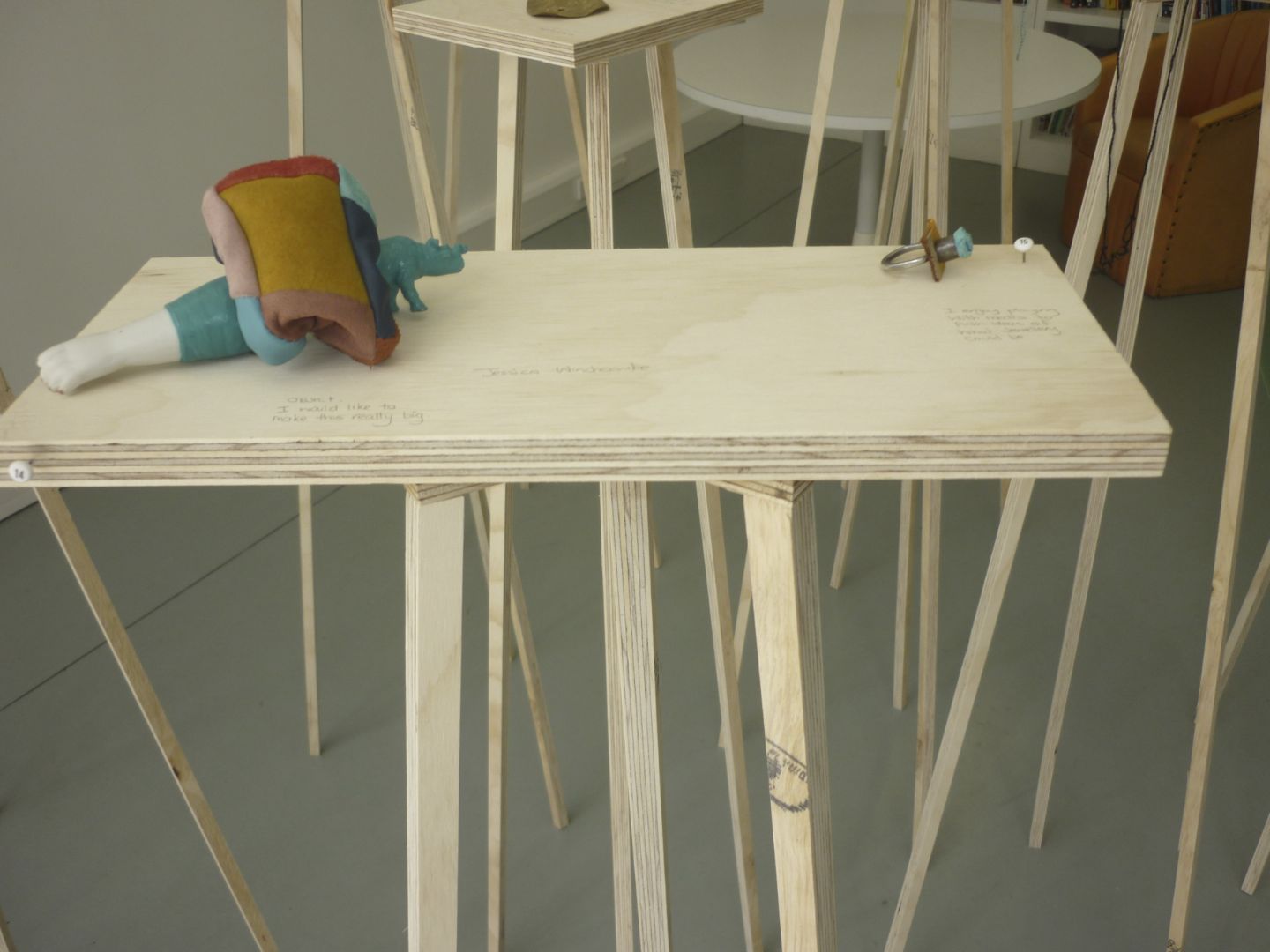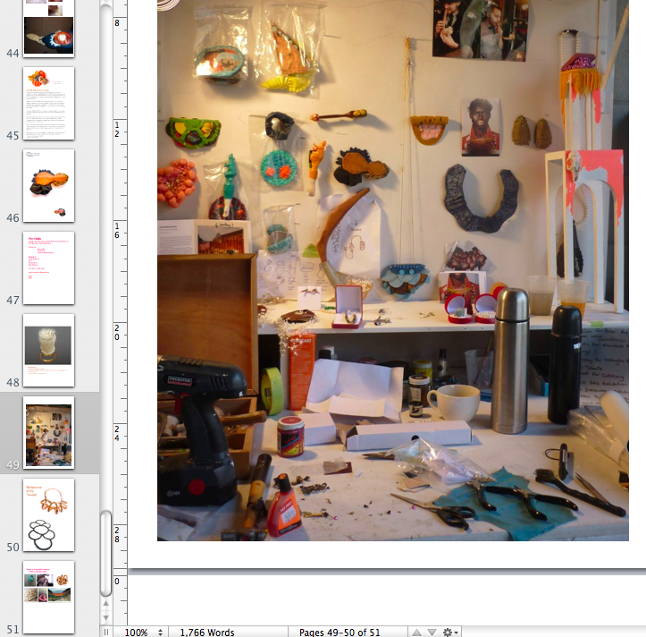 Left is my studio. I am currently working on my 2011 scheduled exhibitions, this has led me to be making constantly and developing many interesting models. Jessica June/July
