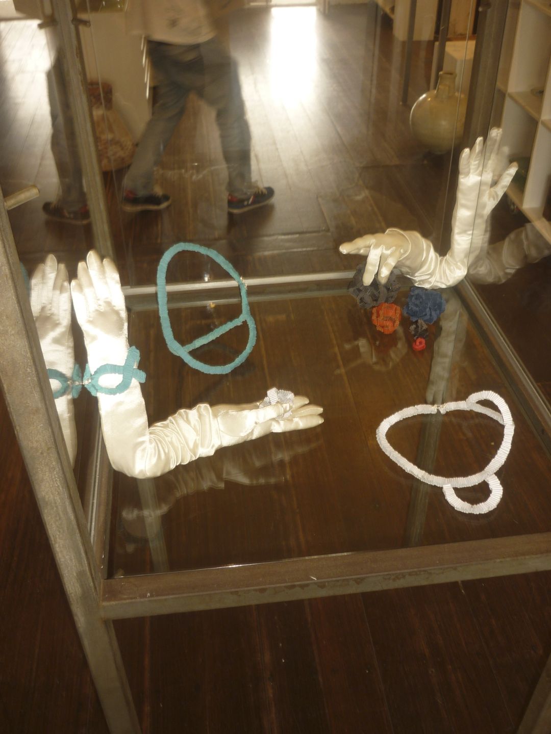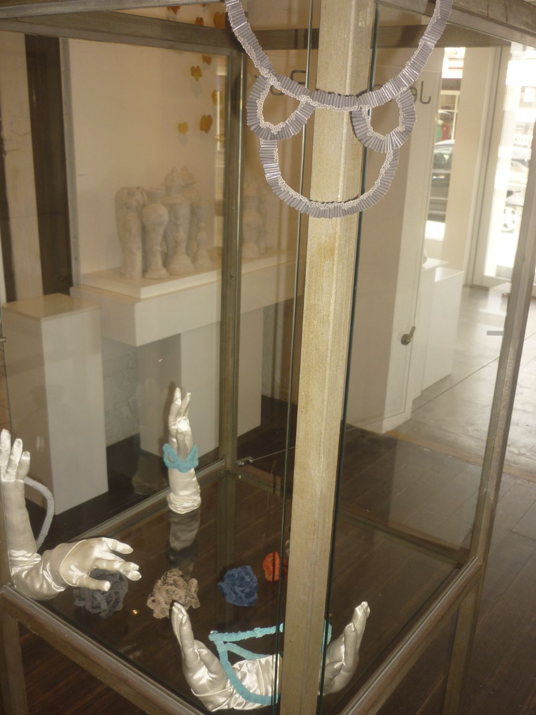 The set up for the HANDSHAKE exhibition was really neat. The building the NATIONAL is in is stunning beautiful and CAROLINe has a very good eye for placement and is fantastic to discus things with. It is strange she is not a maker as she speaks a very strong jewellery language and it is exiting to have someone like that representing our show.