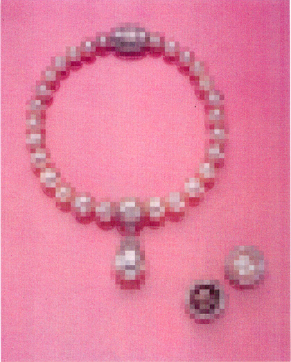 “The enlarged coarse-grained press photographs show several men being touched by other men. The men are Hans Dietrich Genscher, General Pinochet, Jacques Chirac and Brotislaw Geremek. However, on closer inspection the viewer will see that something is wrong. The gentlemen are being decorated, paid tribute to or are receiving a medal. However, the object is always retouched out of the picture. Consequently, the men appear to be touching one another in public for no apparent reason. Mackert’s work is about jewels and ornaments in the broadest sense of the word. It is about power, codes, status and rituals even if there is no jewellery in sight. By means of image manipulation the artist reveals the role of jewellery whether it be a necklace or a military decoration. Here she relies on the keen eye of the observer.”