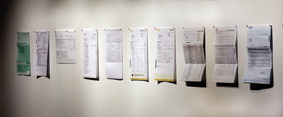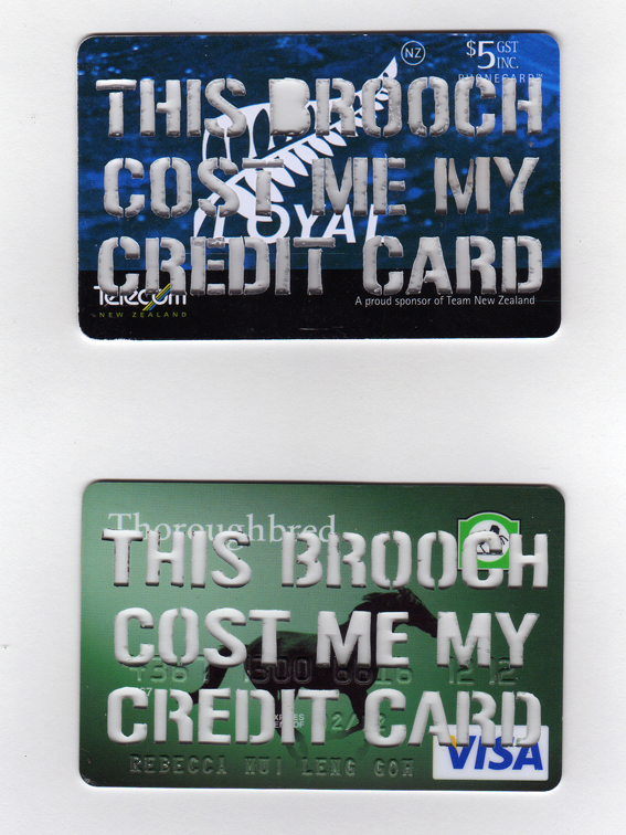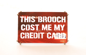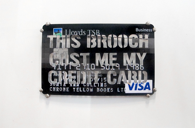 The work I exhibited at Studio 20/17 was a two part work involving a brooch and a framed image. The brooch is made from my credit card, cut at the end of July 2011 with the closing balance from that month, placed inside a 24ct gold plated bronze setting. The framed image is my personal Visa card statement from the month of July showing such transactions as: