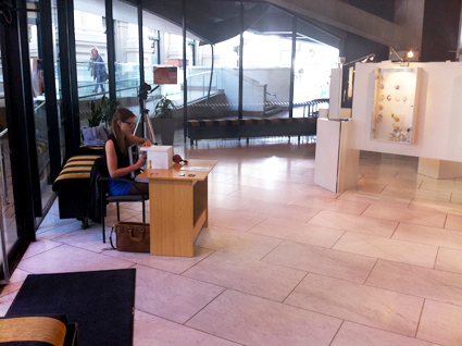 He then stood to the left of the work acting as a body guard. Once my tutors had finished marking the work he put the card back into its case and left.