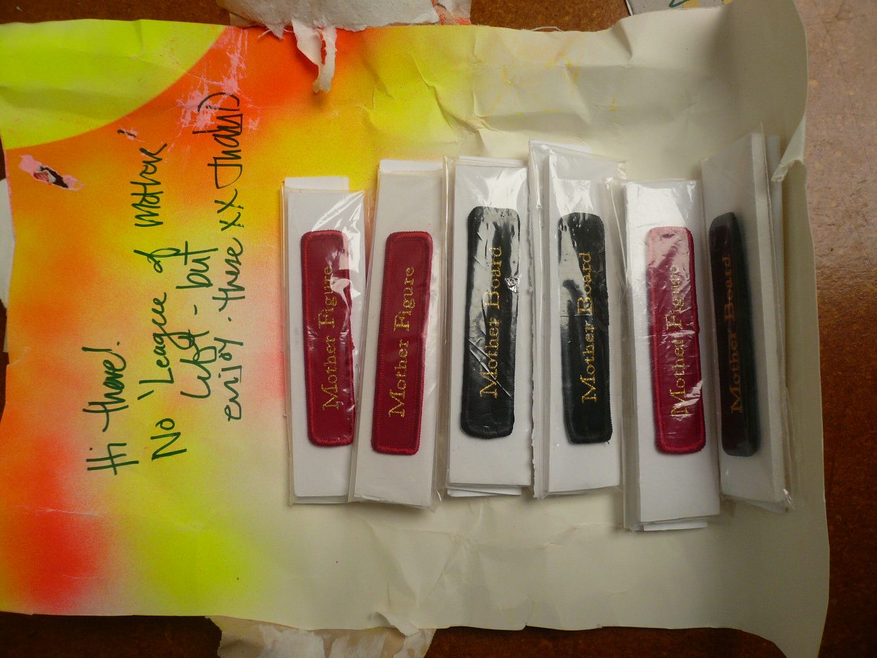 vi) We discussed display and Judy’s idea of stands of different heights, maybe glass circles or rings? I could use a sample with no list of materials on the back so I didn’t give away anything… but then we decided people know how badges look on so that might not be necessary. I will however ask the gallery to try to stop people from just turning over all the works to see what is in the individual badges. Keeping the decisions aesthetically based with material value a surprise. So someone might buy a work for 15 dollars that is worth 30 or only 5.