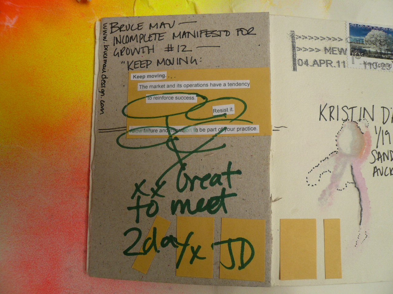 However, a few weeks have passed and major projects have finished up (curating Imaginary Cartographies, and crazy times at my day job) and I am seeing the value of this shared interest in Judy and my practice. I think it would be good to incorporate the ‘take away’ containers into a community event and Judy is in agreement. More to come on this.