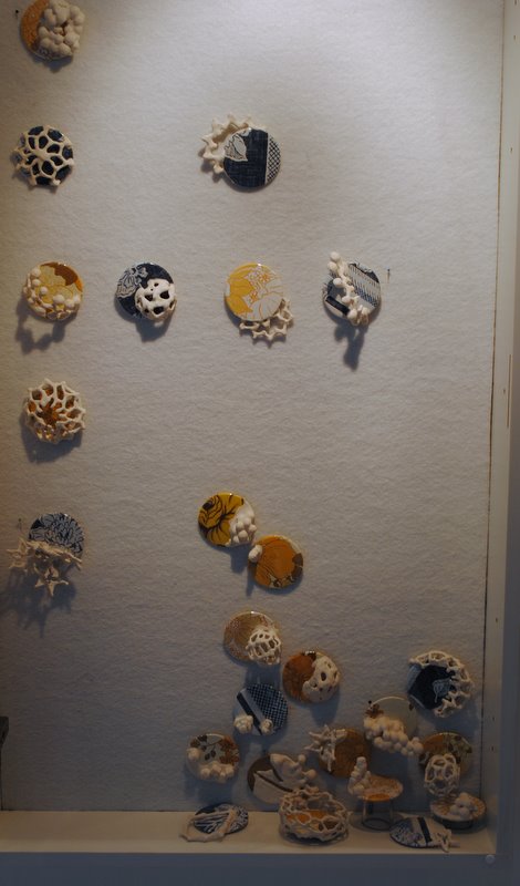 Judy made a comment about doing everything in threes. I am making my third batch of badge-brooches and will start to morph the project in a new direction after this show.