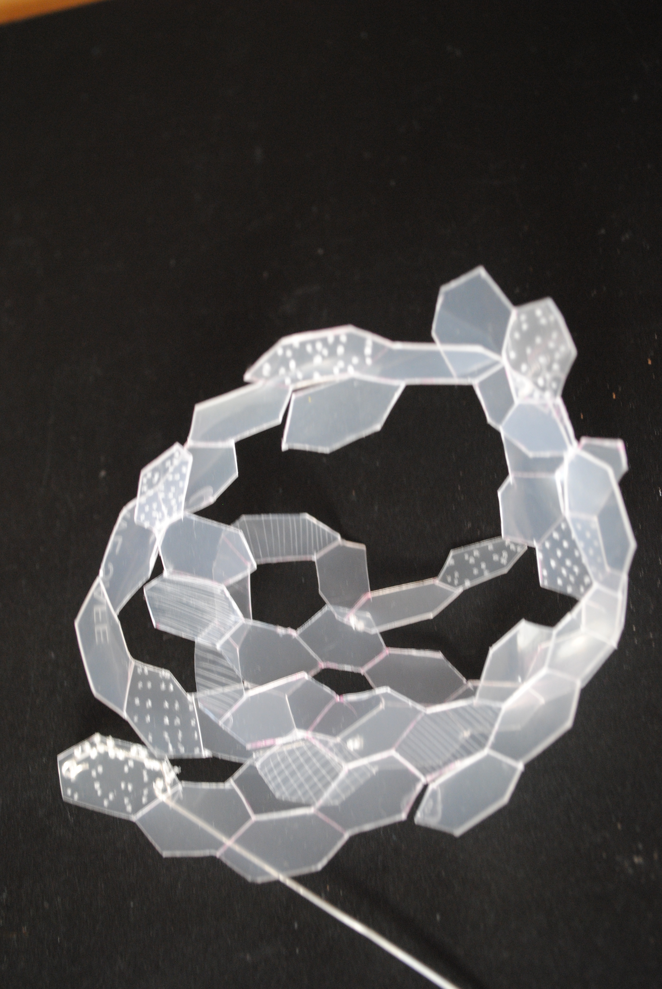 Judy arrived at kokako – the best newly relocated cafe in Grey Lynn, in an amazing blue vintage dress. We discussed my attempts to take Judy’s advise and go big. I am trialling two methods…going big as a number of components or go big as in big pieces of plastic. We are leaning toward many components. Judy was interested in the ways I am starting to change what I am doing with the plastic components. And you would think I could control the material by now, but I am still finding the take away containers annoyingly brittle, especially as I am trying to scale up. I have started to use milk bottle plastic. It is more opaque but more giving and flexible. We discussed the importance of milk to the NZ economy and how that was a nice material to use in an overseas setting. And very in keeping with all things maternal.