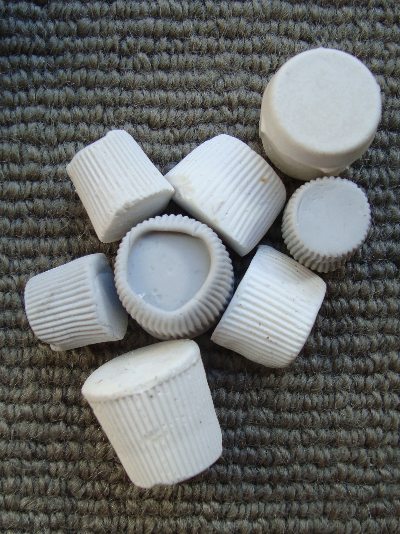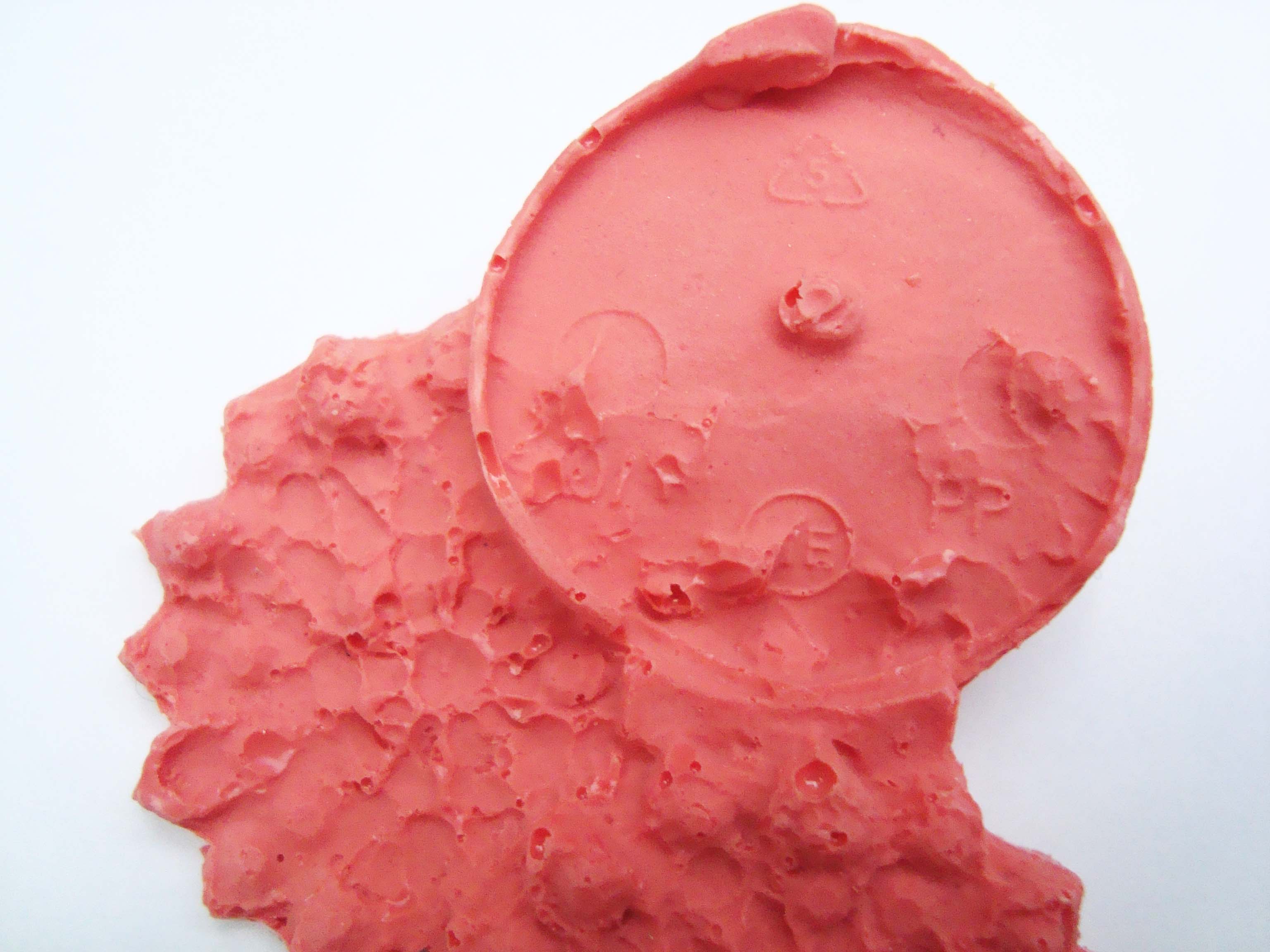 I have been enjoying the process of using new materials, the quick mould making process is very liberating and I have always loved playing with gooey, messy materials. I have found the forms quite challenging. My work is normally quite structural and so this is certainly a shift in my traditional aesthetic. I couldn’t help but revert to casting objects I feel more comfortable with – mass produced everyday items such as toothpaste caps and milk bottle tops