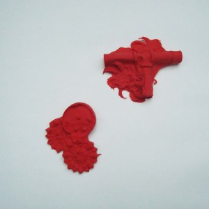 I made some quick and rather crude little maquettes in fimo, black wax and porcelain. I used these little ‘Surface Tensions’ to explore and think about what I am trying to search for beneath they layers, what I want to reveal. Exploring materiality and texture whilst thinking about the surface tensions I have been trying to dig into. It feels all quite literal at the moment.