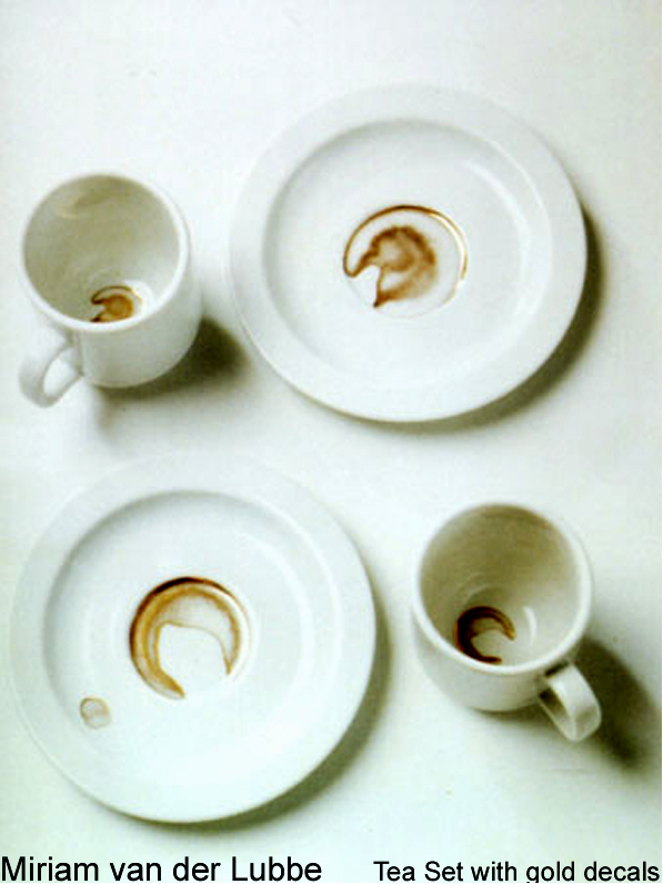 China set with ‘stain’ decals by Miriam van der Lubbe