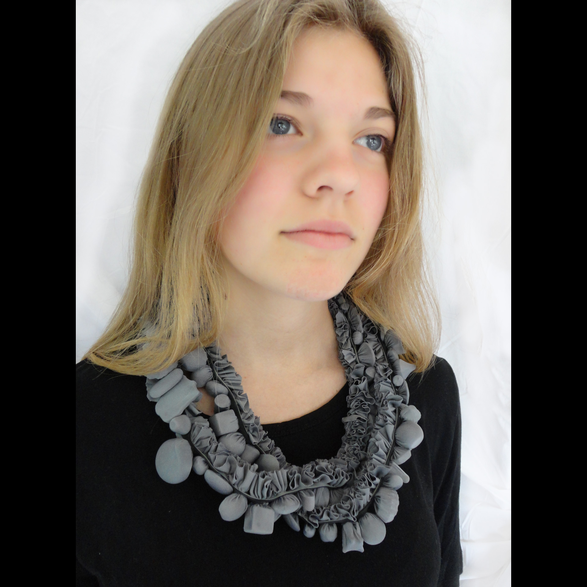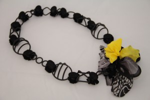 This necklace sits on the body well. You can wear it doubled like the photo or single. I plan to keep working on this idea along side my metal structures.