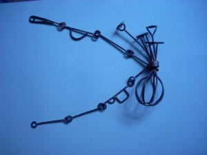 I have made some more copper pieces that I am forming into a necklace. It has been a difficult challenge to figure out how to join the pieces together. However I like the fact that I have set up these in house boundaries when making. It simplifies things for me and I focus on the structures themselves. There use of space and how they work together. Lucy suggested to take photos of the pieces like a sketch, to see how they will look