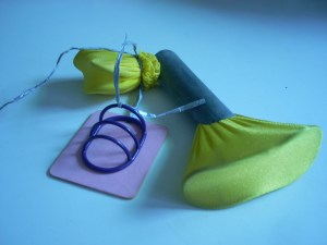 Time is getting on and I feel progress is being made. I have had great emails from Lucy and a successful skype session. To begin with her advise was  ‘wearability is not the main focus now; try to experiment a lot first’ I have taken to this and been playing with new ways to attach my fabric structures.
