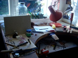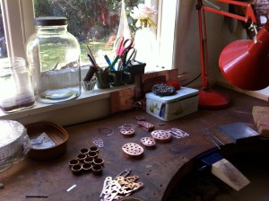 This is my studio, it is very basic at the moment, but you would be surprised what can come out of it! I have been sketching my structures so it is fun to make them up. At the moment I am trying to figure out how to attach them-  brooch, necklace? This part always needs a lot of thought so the finished piece can feel a sense of balance.