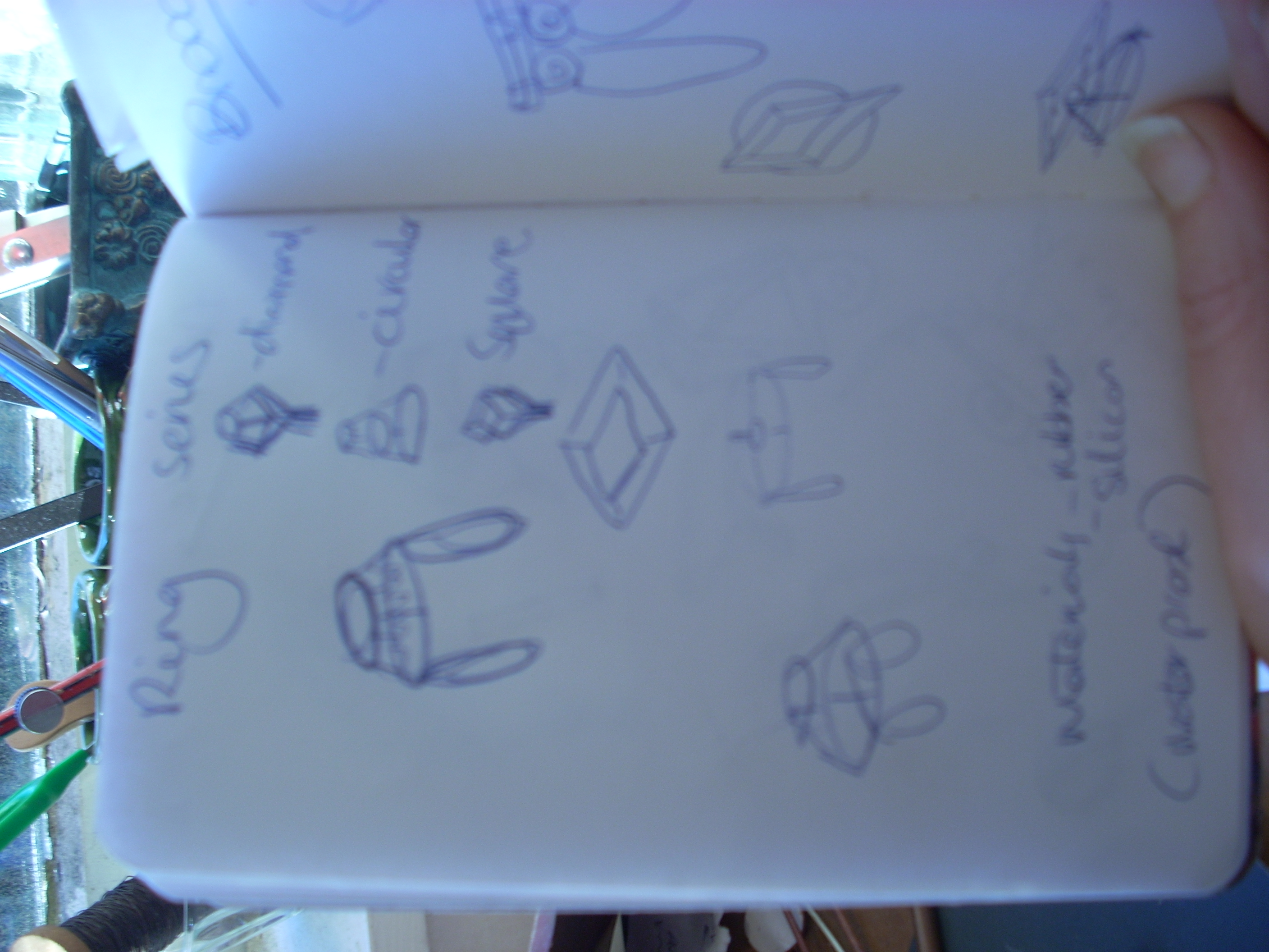 This is a sketch of a ring, I thought about having a bit of fun with this idea- making a large rock shape ,covering it up with fabric- a shape of value made up of space and light.