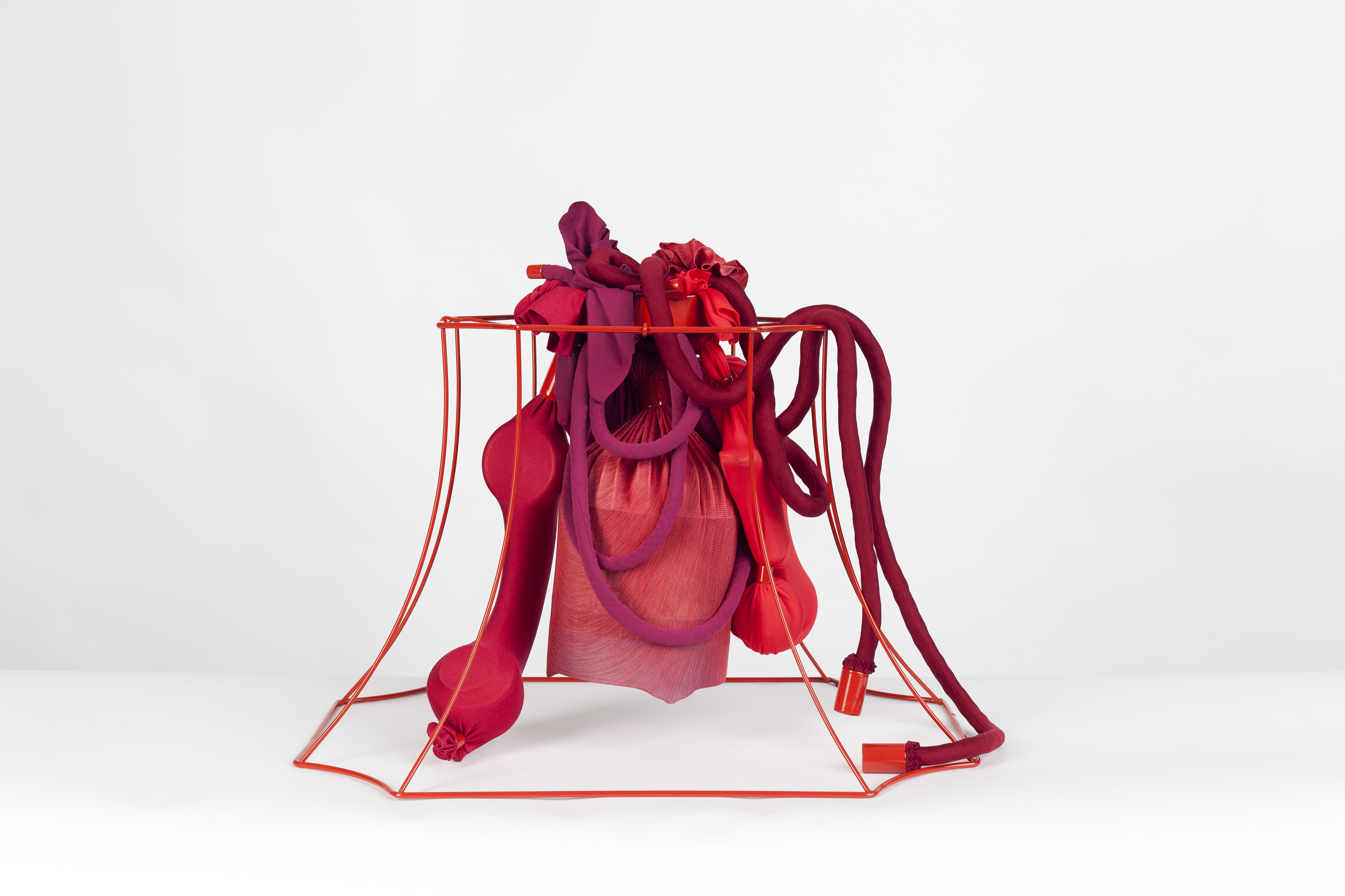 I have been busy in my studio banging out lots of different shapes and forms. Building up a collection of  structured pieces . As mentioned before Lucy wanted me to play with scale so the pieces have grown in size. The lampshades I have been looking at for structure have been very inspiring for there form however after making a couple they don’t seem to cross over to the way I have been pulling fabric over. Maybe the stitched panels on fabric lampshades give a more hug shape fitting appearance. I like the fact that this doesn’t easily happen. It gives the structure more attention, and questions about what it is. A space that has an inside which is slightly private and an outside which is very public.