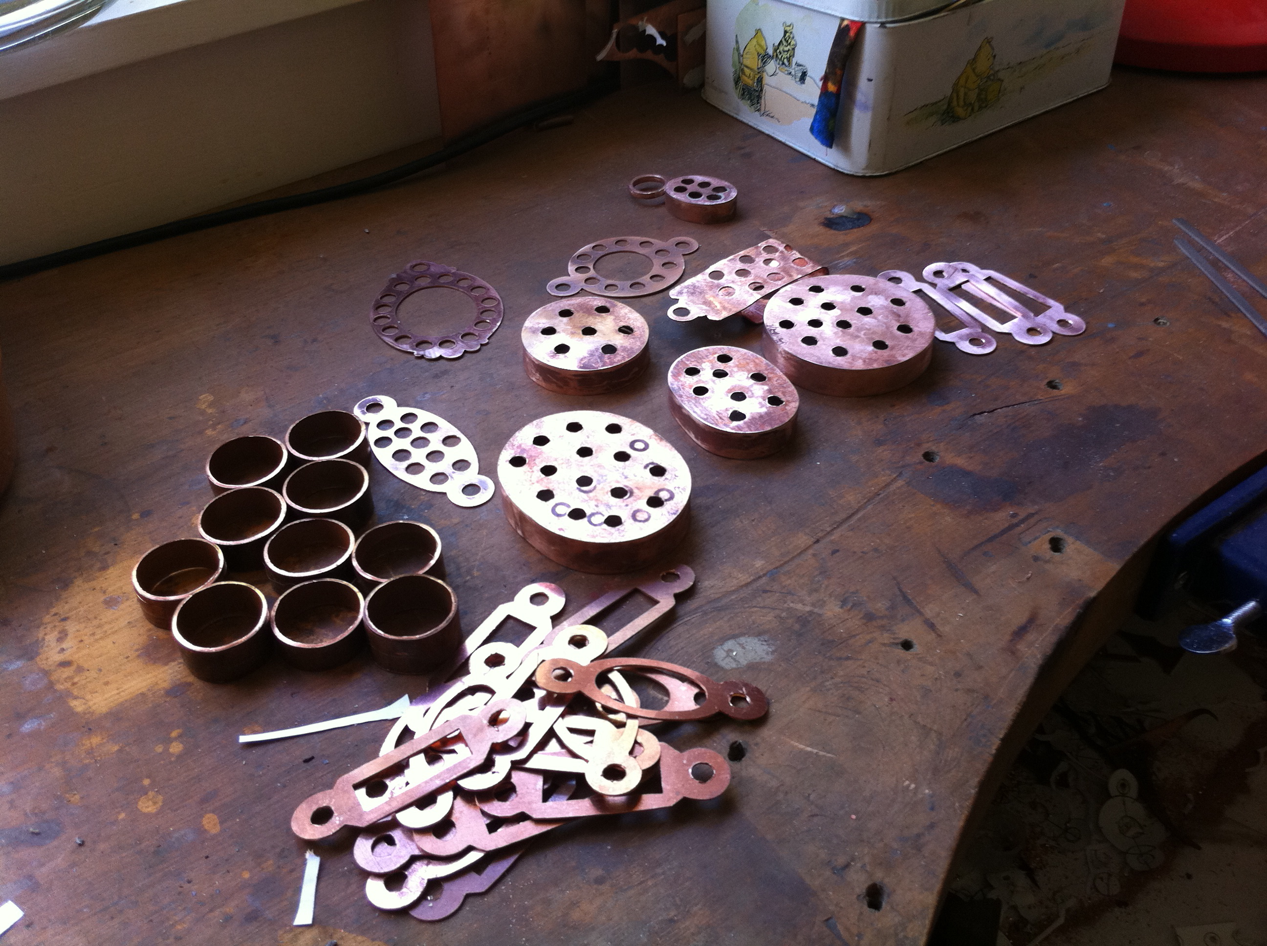 Time goes by quickly, but I have been busy making in my studio. The objects above are at the powder coaters so will post a photo when I get them. The chains are very labor intensive.