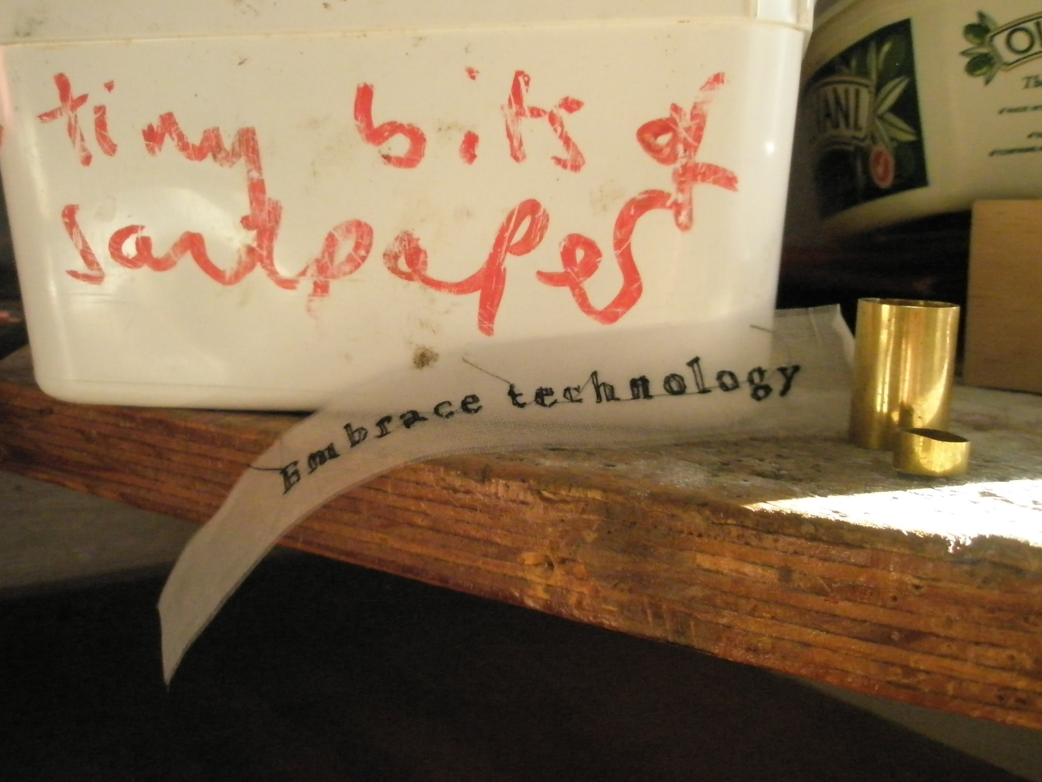 So, a new start. Embrace my issues and turn them around. Welcome the opportunity to participate in the 20/17 show, with the various parameters that apply. Work small, as per Iris’s suggestion for group shows in small spaces. Close my workbook and put aside notions of participation and social conscience. Back to basics; let the materials talk to eachother and see what unfolds. Surrender to the process and be open to relinquishing control.