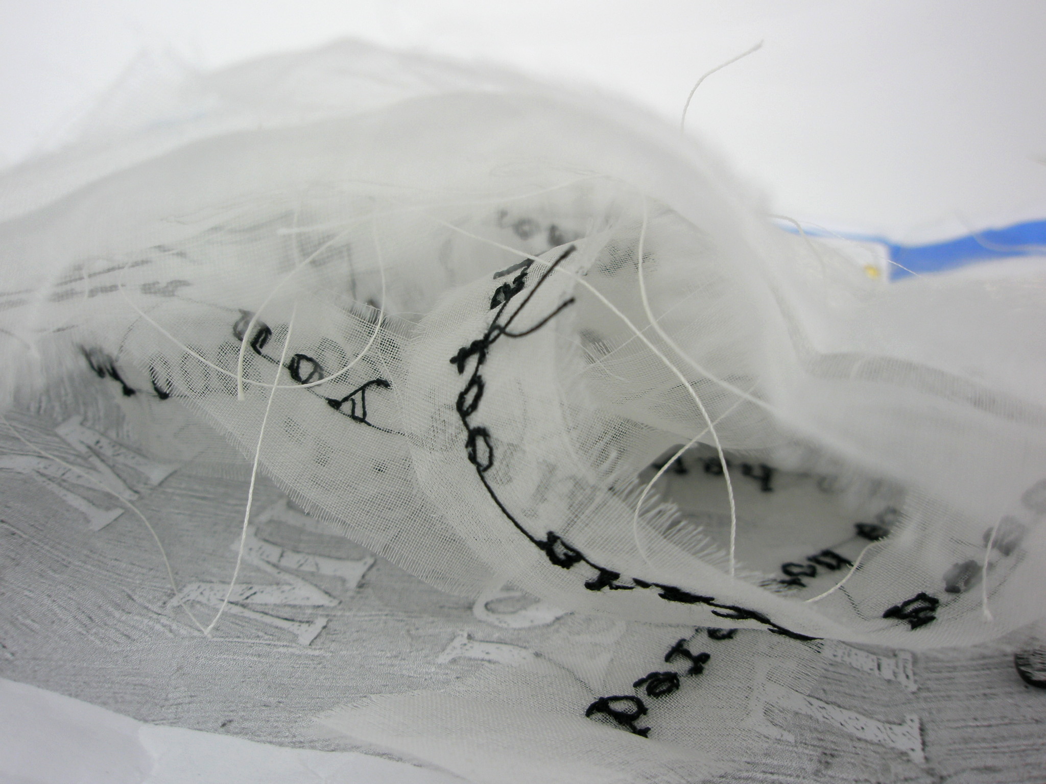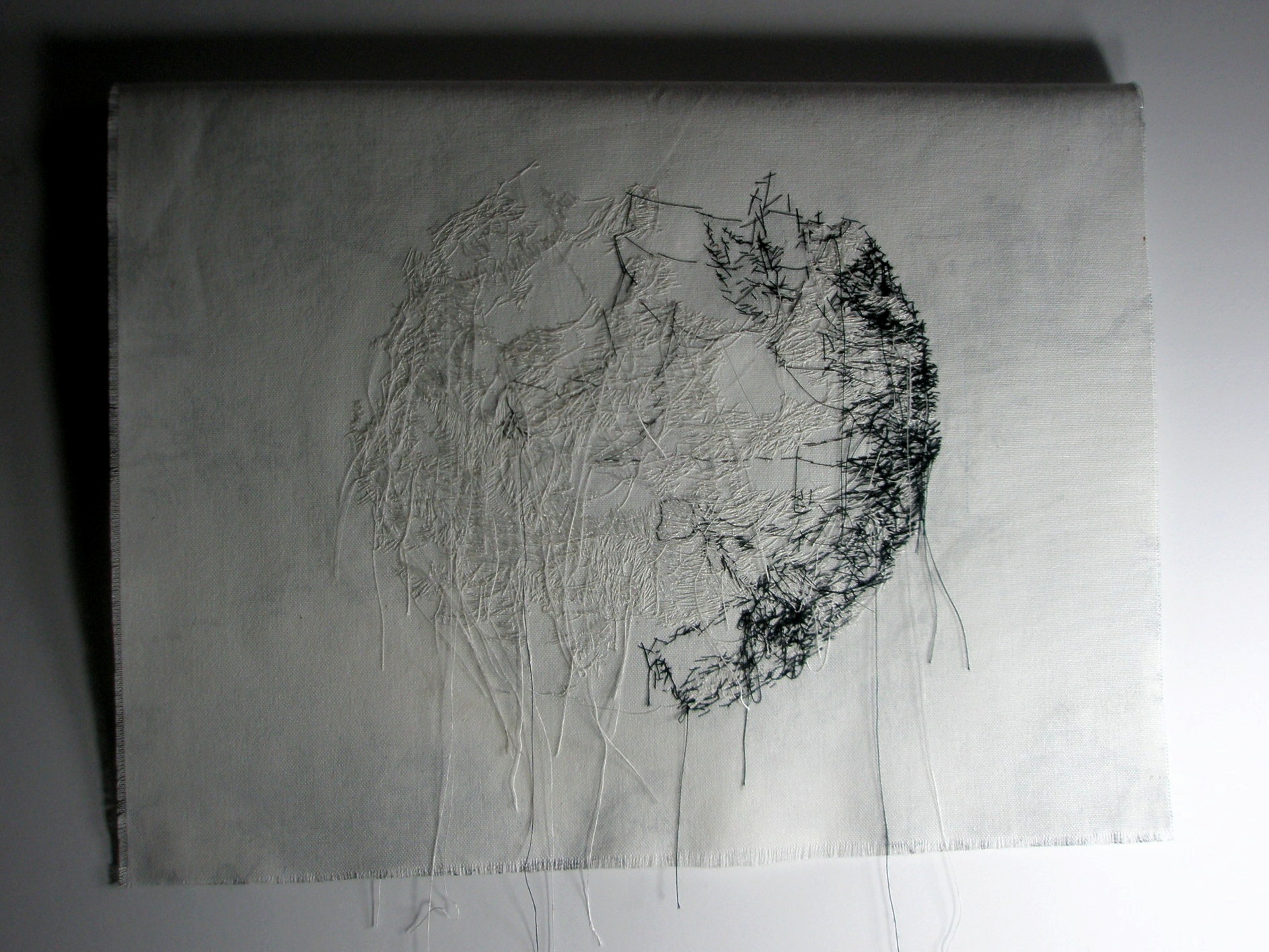 I buy toile fabric and embroider obsessively to engulf the scene, first with white silk, then black will follow. I have no idea what I am doing (but if does feel good to be doing it).