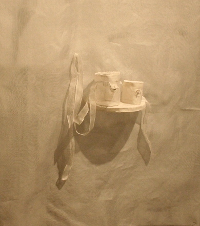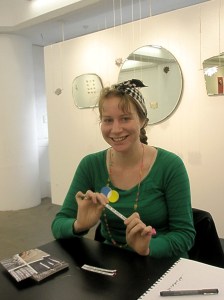 - indistinct forms (we are moving fast here), which Iris describes variously as embroidery, fimo, horse, Easter Bunny, left-over sushi, sculpey, porcelain (with a reference which I don’t quite catch to a Detroit gallery and a tile factory)