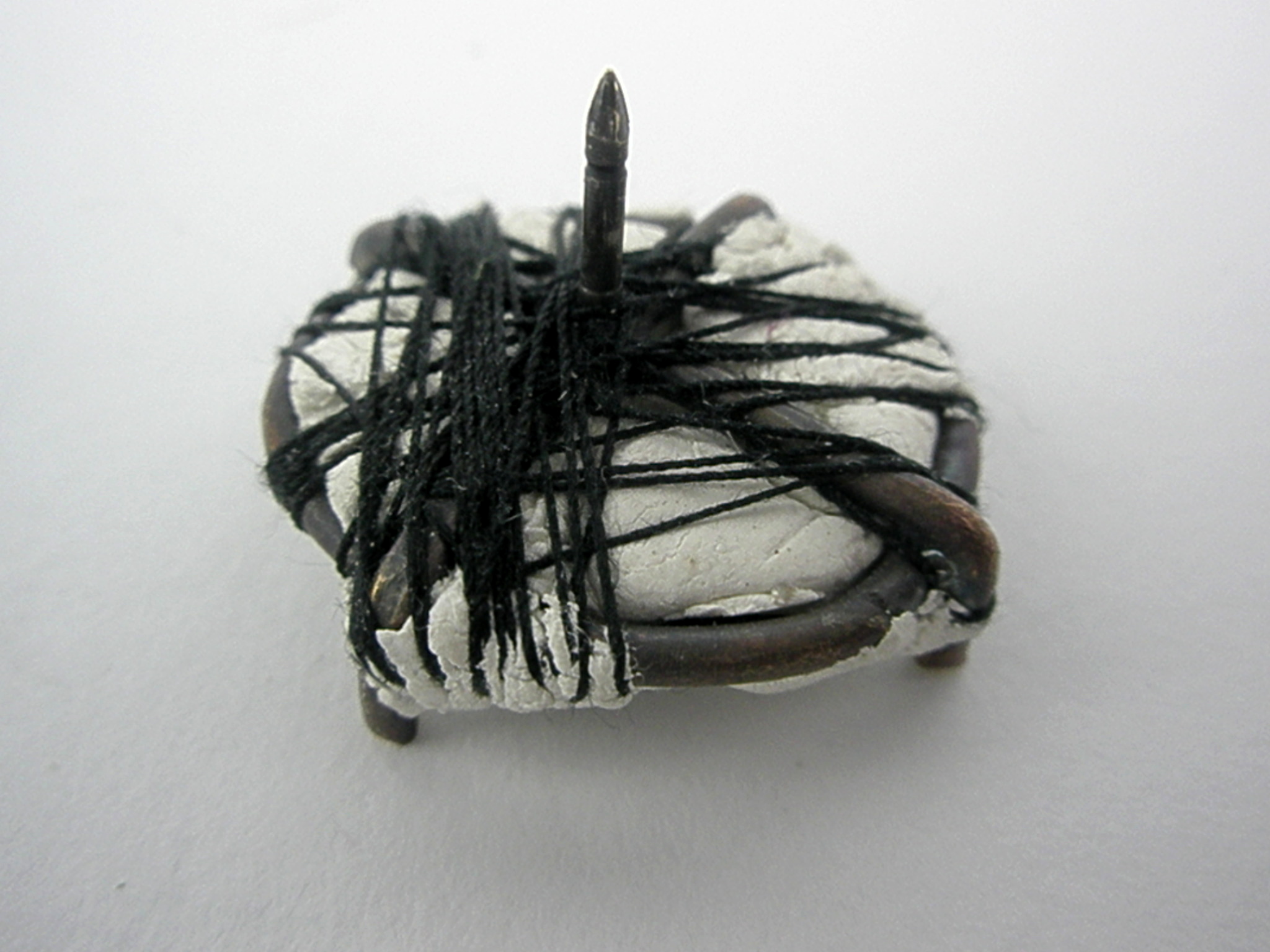 Protection: Brooch for the Day Job: bronze, silver, cotton; lapel view