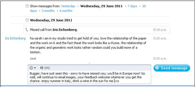 We are both mindful of deadlines; Iris leaves for Europe on 30 June, so, we have only two weeks of possible contact. We agree that moving forward we will talk little and often. So, this time we talk about: