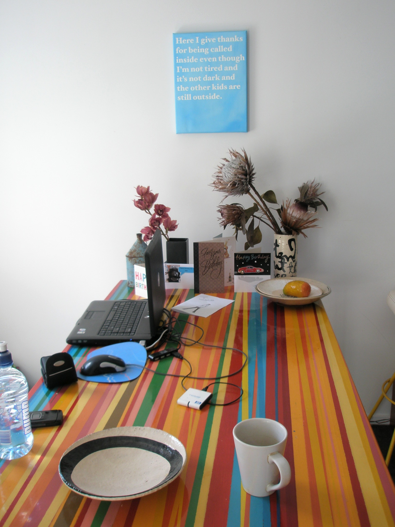 Work (as in, ‘serious play’, as in ‘if it was easy, everyone would do it’, as in ‘put in your 10,000 hours’, as in ‘this is your job now’, as in ‘enough with the kitchen table; sort out a workspace so you can go to work’)